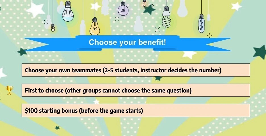 To contextualize the sentence creation, students were required to relate sentences to an article they were assigned to read before this class. Although the game was designed to last for three rounds with a five-minute limit each, teachers can modify the number of rounds or the time to address time constraints. The collaborative nature of the game encouraged students to think critically about using evaluative adjectives in a contextualized manner. The competitive element can increase students’ motivation, as they interact with learning materials and strive to lead their teams to the top of the leaderboard. At the end of each round, the instructor assessed the appropriateness of their answers and awarded points based on their category and level. For instance, a group that selected Positive (category), $200 (level), and successfully generated appropriate sentences within five minutes, would receive $200 whereas teams that failed to generate an appropriate sentence within five minutes would be penalized by having $200 deducted from their total points for that round. The group that generated the most sentences at the end of each round earned another $100 bonus. The scoring system was designed to reinforce the importance of quality and efficiency in creating sentences during the game.