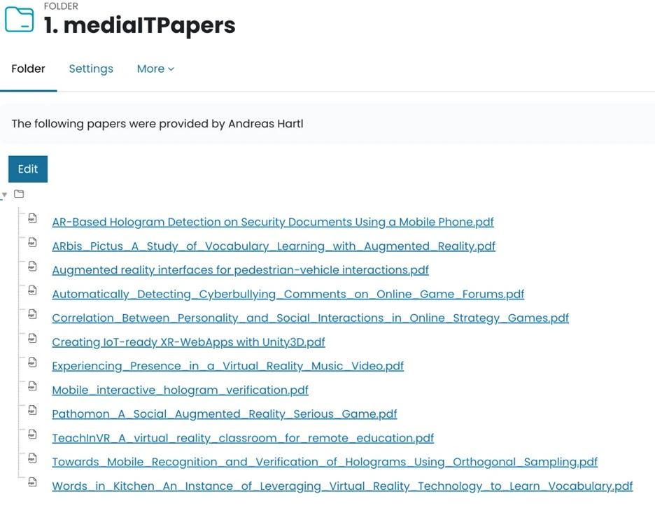 Figure 2: List of mediaIT papers provided by Dr. A. Hartl, Carinthia Univ. of Applied Sciences