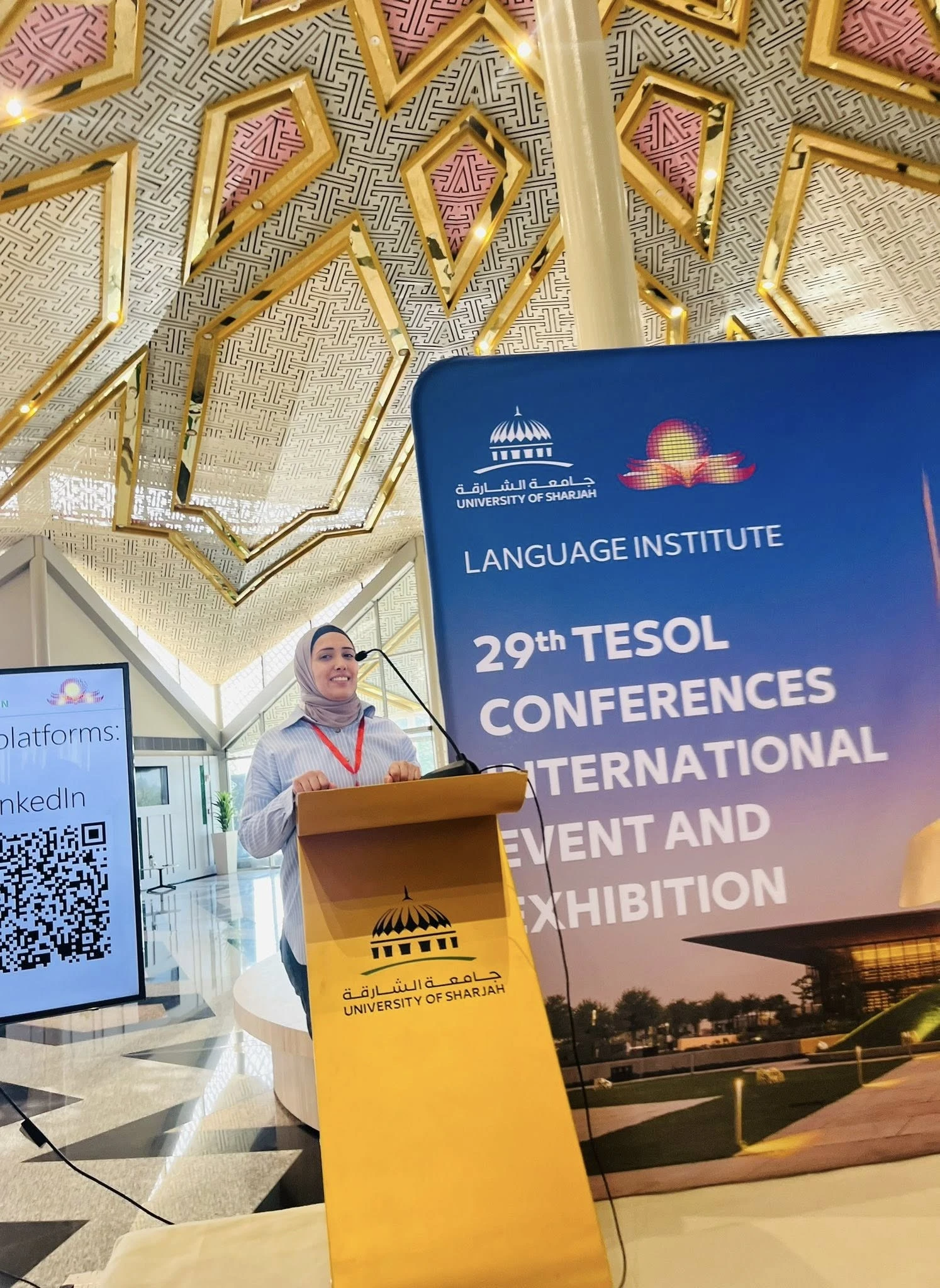 Photo caption: Speaking at a TESOL conference at the University of Sharjah