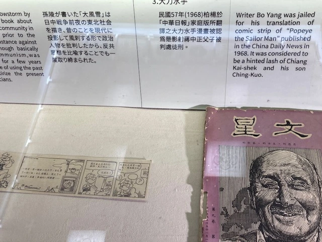 Alongside the Generalissimo’s personal effects, luxury automobiles, and trinkets gifted him by heads of foreign states was the newspaper clipping of a Popeye the Sailor man cartoon. He apparently interpreted its publication in a Taiwanese newspaper as disrespectful, for which the newspaper editor was imprisoned. See Image 2.