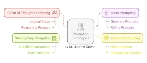 Structured prompting techniques, such as Chain-of-Thought Prompting (CoT), Few-Shot prompting, Step by Step or Directive Prompts, Meta prompting, and Persona Prompts, create reproducible strategies and methodologies that guide AI systems to generate precise, contextually relevant outputs tailored to multilingual and TESOL-specific needs. These techniques ensure consistency and scalability, enabling language educators to apply reproducible strategies across various instructional and research contexts.