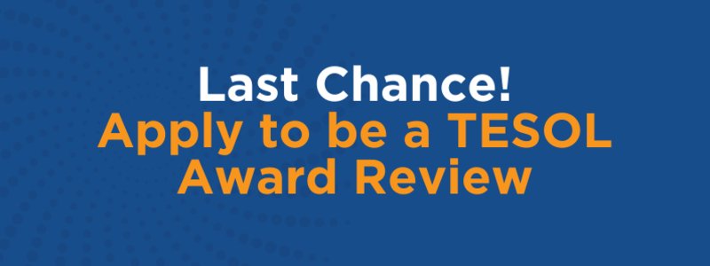 Award reviewers are an integral part of the TESOL Awards program and the award selection process. TESOL invites you to use your expertise and experience to evaluate applications for these awards: